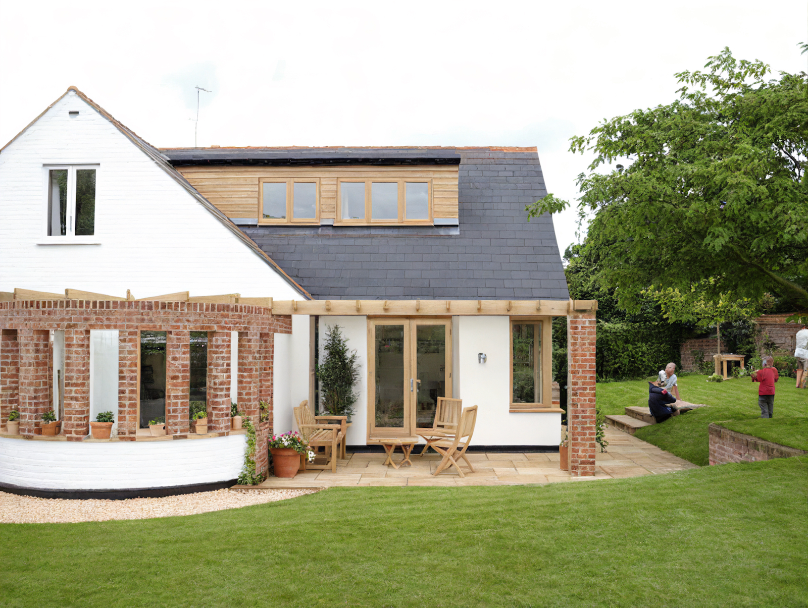 This grew from a 1950’s farmworker’s bungalow to a comfortable 5 bedroom house. It now benefits from a ground source heat pump supplying ample hot water and heating. The new family room which links with the garden comfortably hosted 24 for Christmas dinner.