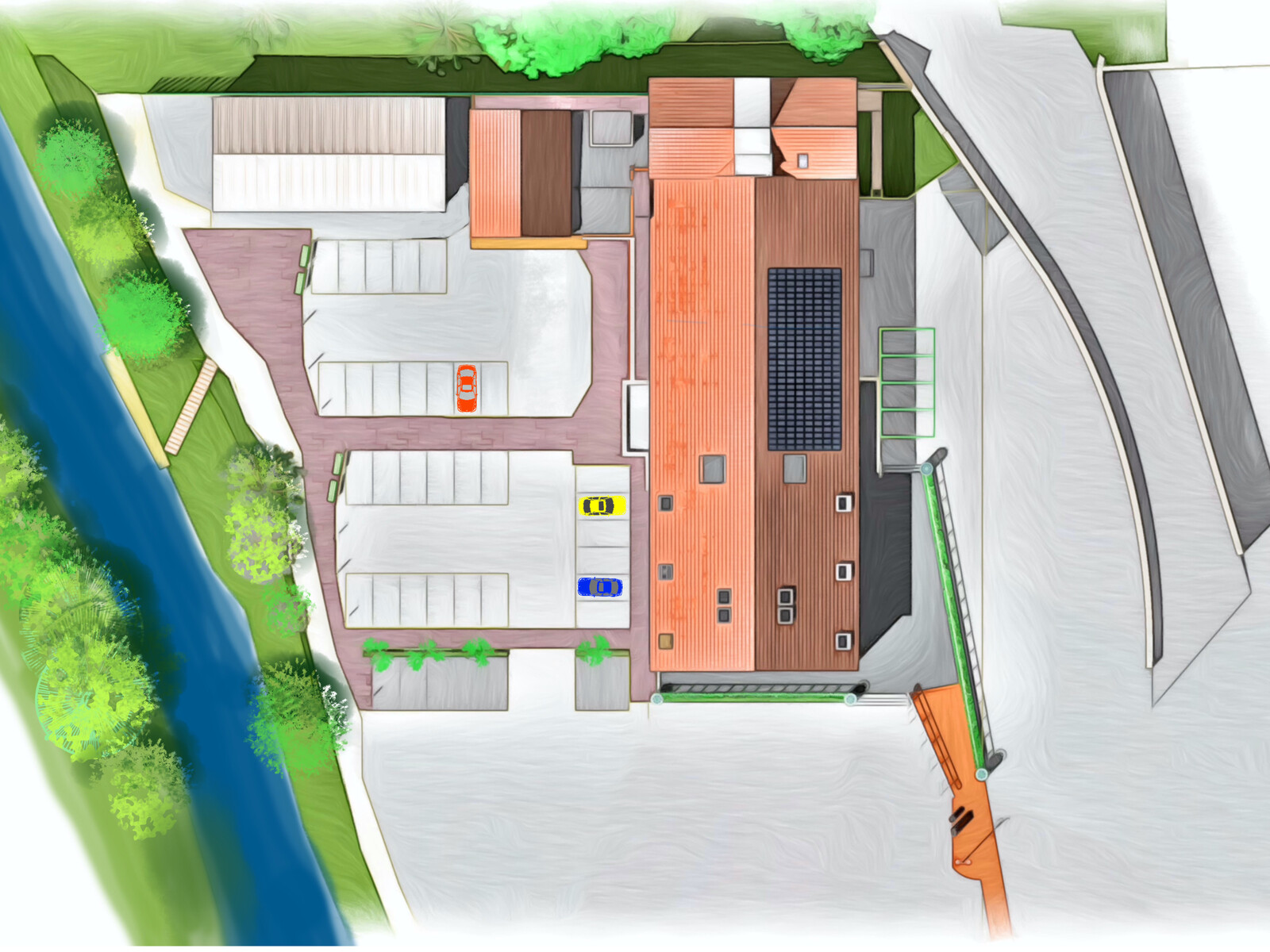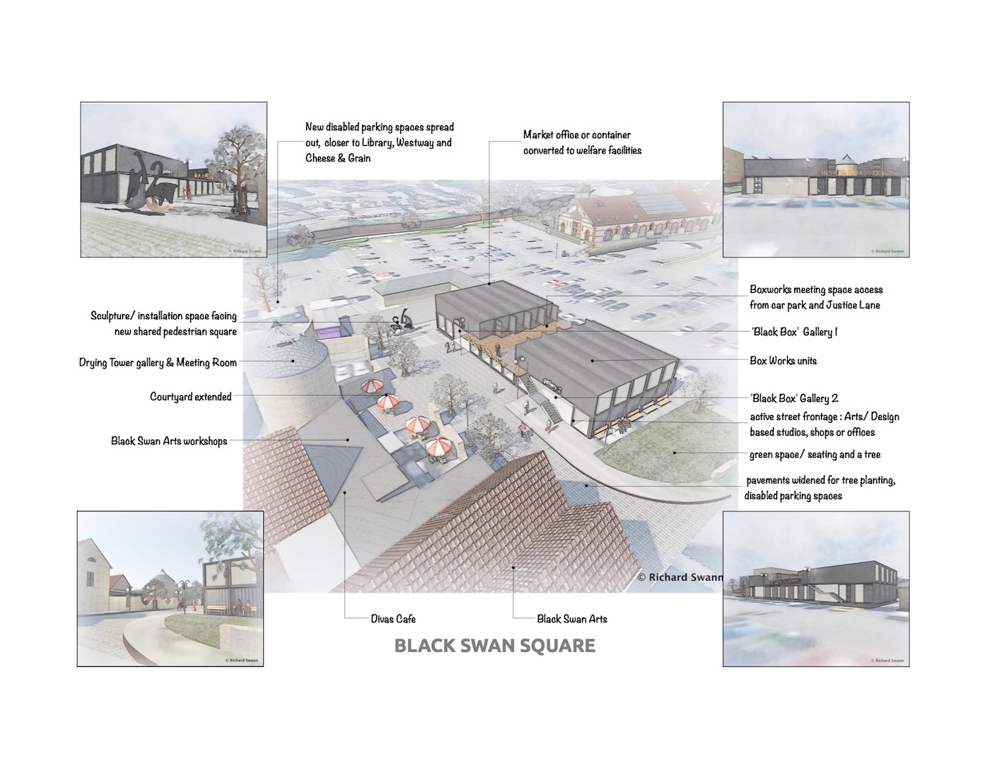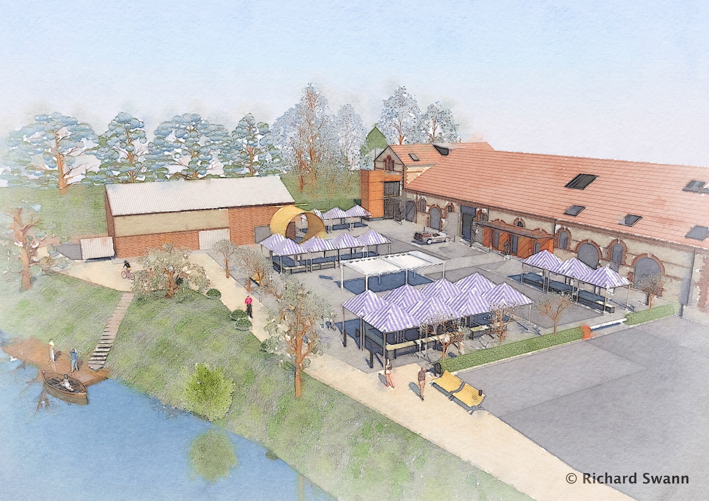 The proposals build on the success of previous projects with the Cheese & Grain and our earlier proposals for the wider regeneration to create a Riverside Place and Black Swan Square . We were commissioned to develop a concept for providing new rehearsal space and post-production editing suites to complement the Bert Jansch recording Studio. The site is located at the back of an unpromising public car park, backing onto a live mineral railway. We developed a contextual design that connects the building visually with the Cheese and Grain and provides an additional entrance for the venue. With detailed Planning permission achieved, Event Tec are now looking forward to completing the technical design.
