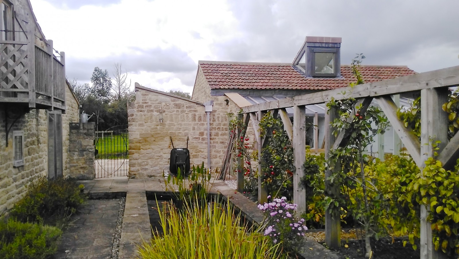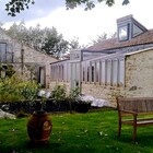 A 'Janus' garden building facing two ways, a different face and function for each of the owners, a music room for him to hold a collection of several thousand CDs, and a sunny gardening room and potting shed for her. The garden pavilion straddles an old stone wall, facing an existing formal potager to the south and open meadows to the north.