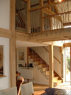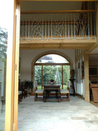Restoration of a milking parlour and barn to a guest suite and principal living area. Passive Solar heating with shading using the barn doors and recovered flagstones together with super-insulation gives comfortable year round occupation.