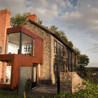 Our approach fully restores the main building, while treating flanking ruins 'as found', with contemporary extensions overlooking the river and approach. The house has an upside down arrangement of open plan first floor living spaces, making the most of the daylight and views in the steep sided wooded valley.