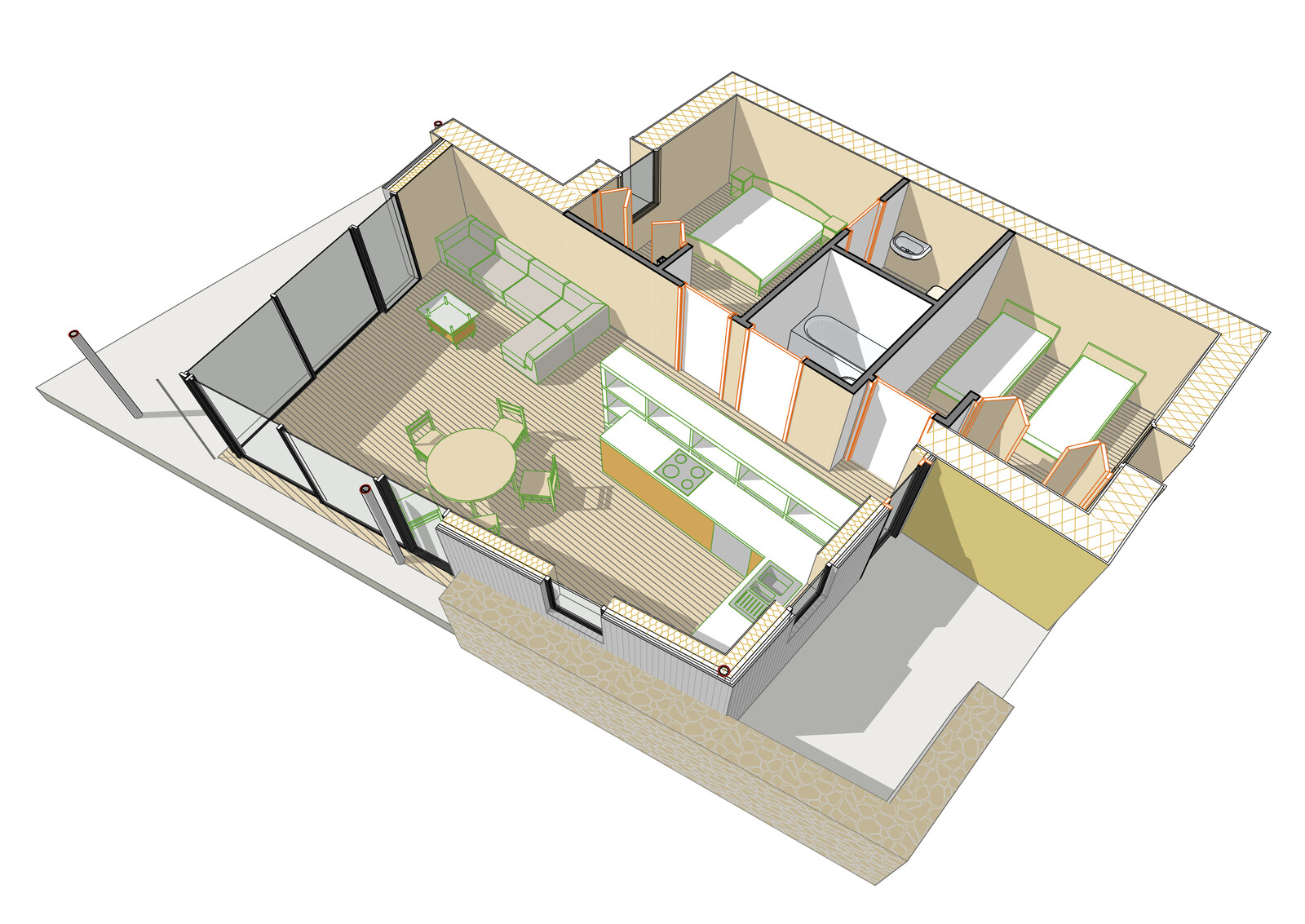 A pair of low-impact holiday lets set in a reptile & insect-friendly landscape. A former car park with field views provides a setting for an ecological experience in straw bale cabins.