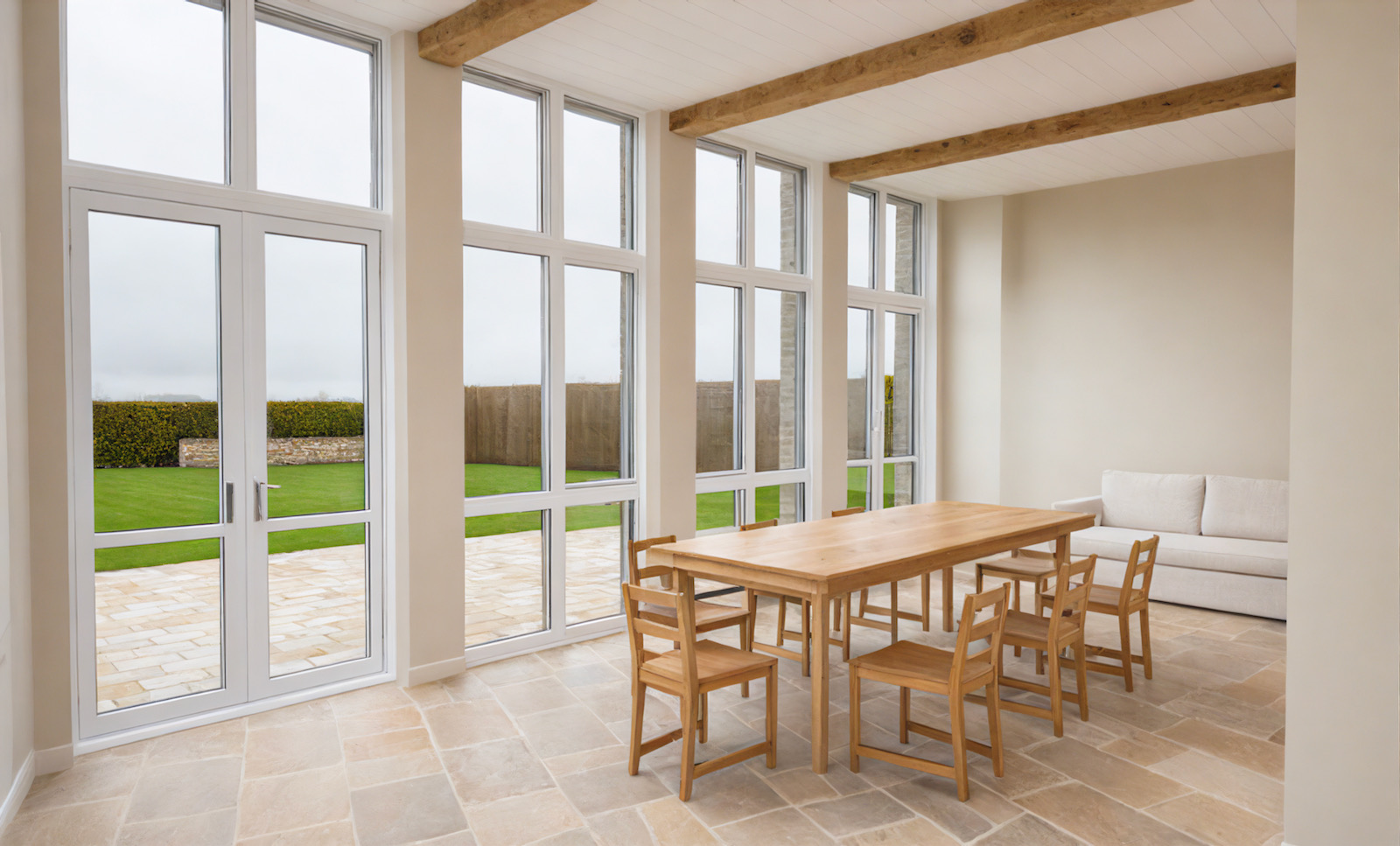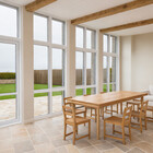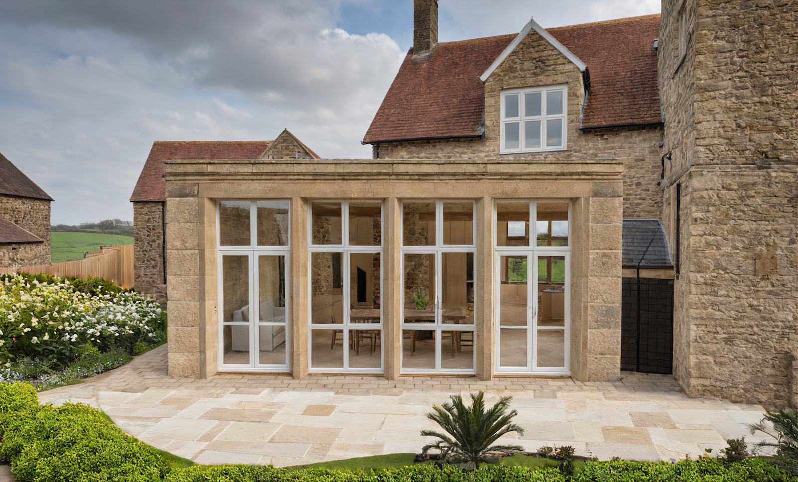 We advised on the internal alterations and achieved planning consent to reconfigure the kitchen, and partly demolish and extend a neglected 19th century laundry, to make a warm and sunny open-plan kitchen and dining area, linking an existing guest wing. The extension takes its cue from the strong architectural style and scale of the main house, while maintaining a contemporary feel.
