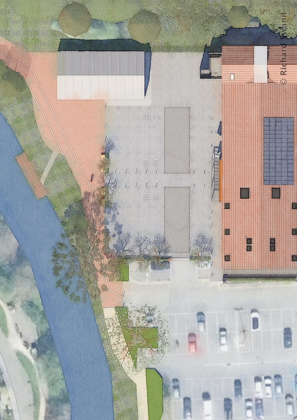 The proposals build on the success of previous projects with the Cheese & Grain and our earlier proposals for the wider regeneration to create a Riverside Place and Black Swan Square . We were commissioned to develop a concept for providing new rehearsal space and post-production editing suites to complement the Bert Jansch recording Studio. The site is located at the back of an unpromising public car park, backing onto a live mineral railway. We developed a contextual design that connects the building visually with the Cheese and Grain and provides an additional entrance for the venue. With detailed Planning permission achieved, Event Tec are now looking forward to completing the technical design.