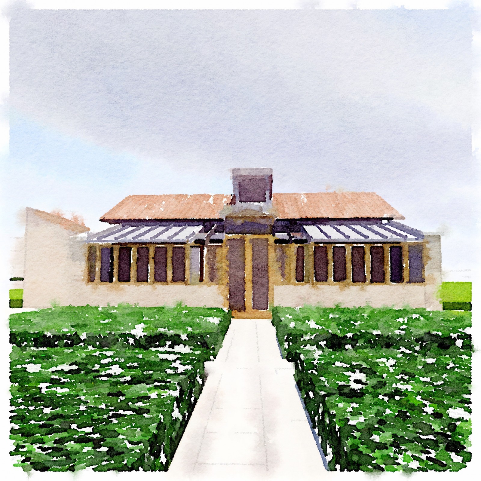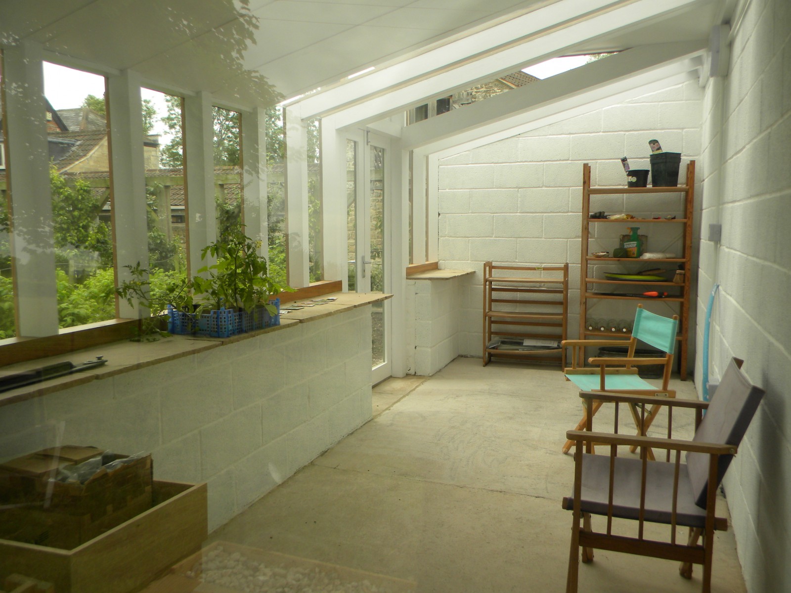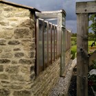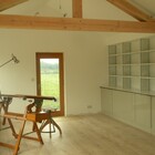 A 'Janus' garden building facing two ways, a different face and function for each of the owners, a music room for him to hold a collection of several thousand CDs, and a sunny gardening room and potting shed for her. The garden pavilion straddles an old stone wall, facing an existing formal potager to the south and open meadows to the north.