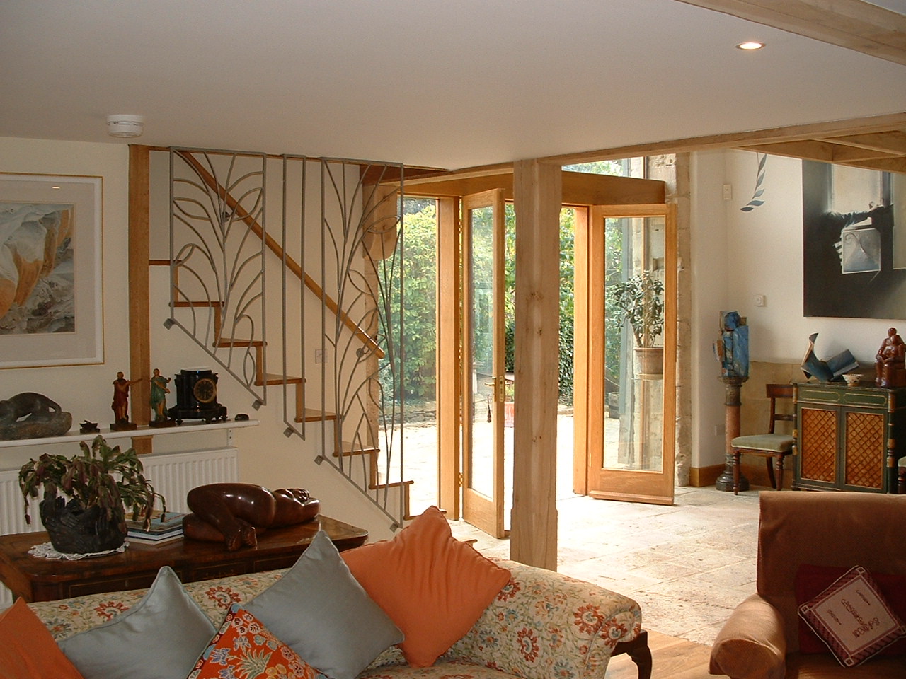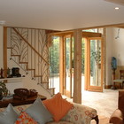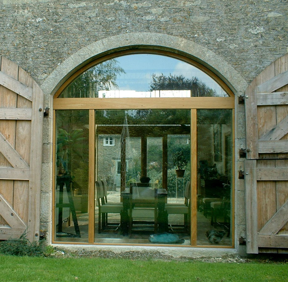 Restoration of a milking parlour and barn to a guest suite and principal living area. Passive Solar heating with shading using the barn doors and recovered flagstones together with super-insulation gives comfortable year round occupation.