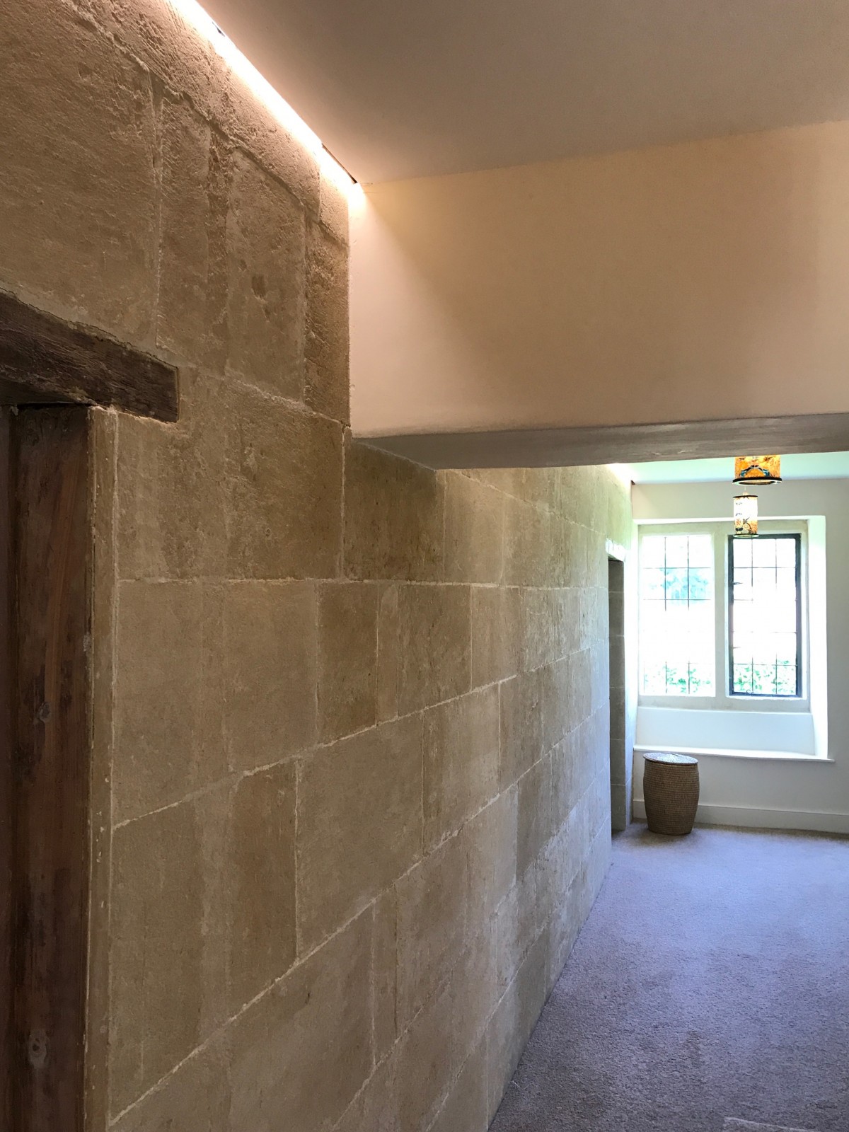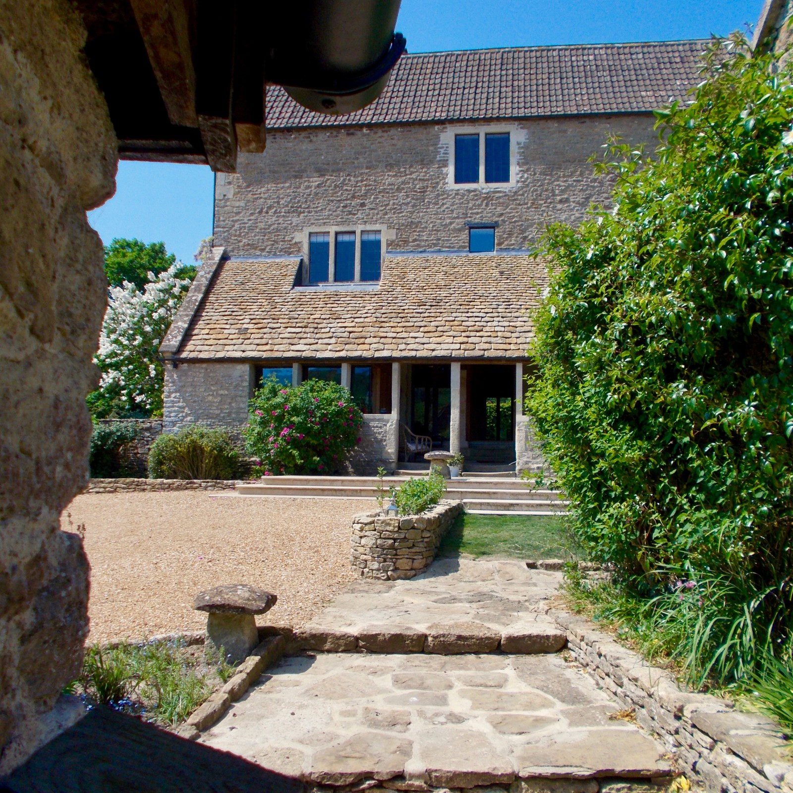Manor Farm is a delightful Listed 18th Century 'model' farm on the site of and incorporating remnants of a former Manor. The buildings and grounds are currently undergoing major refurbishment and alterations in close liaison with the conservation officer. Sensitive stonework repair has been undertaken by specialist masons. All the roofs were stripped, repaired and retiled; the lean-to loggia and dovecot were extensively repaired and re-roofed with stone slates, the original material. Replacement and additional bespoke metal framed leaded light casements have been installed in Daulting stone or Oak surrounds . All the services were completely renewed throughout the house, with new bathrooms and kitchen have been sensitively incorporated.