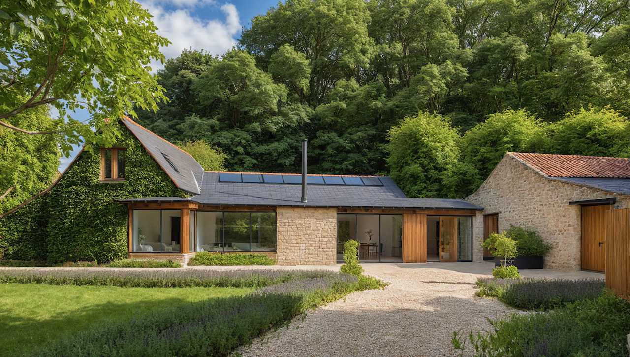 A lovely site with a traditional barn & a modern stable in the grounds of a grade II listed house. The buildings needed extensive modification, extensions and partially rebuilding to transform them into a new home for a retired couple and some relocated Horseshoe Bats. The illustrated scheme shows the extent of new building proposed to complement the existing barn.