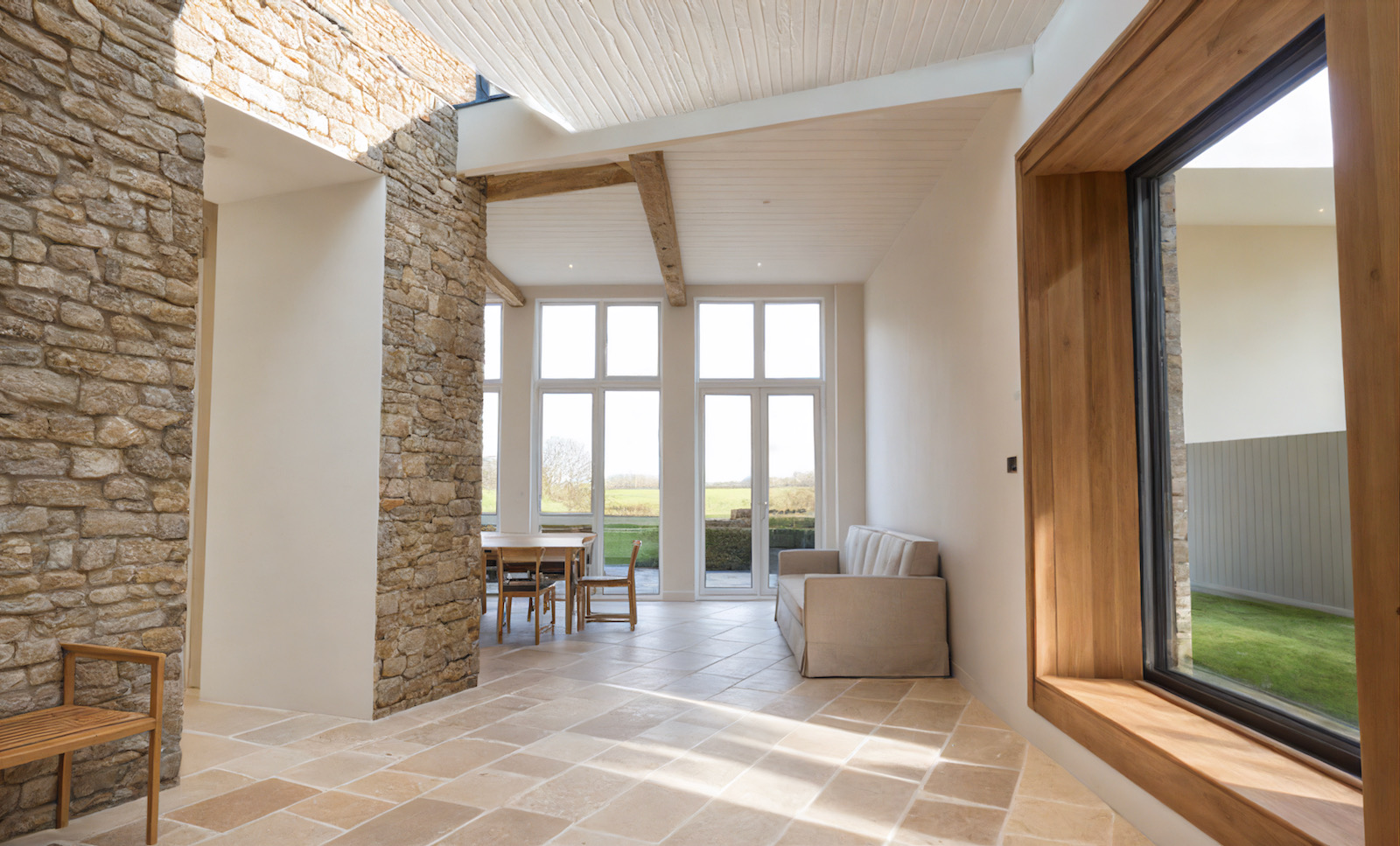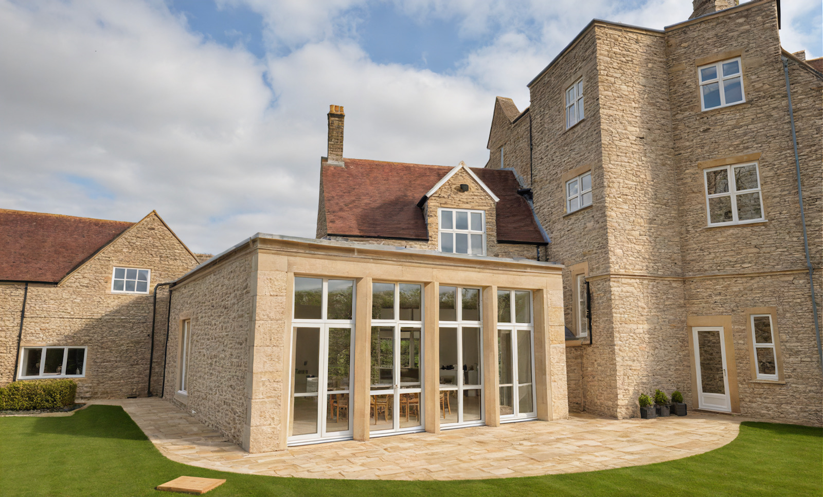We advised on the internal alterations and achieved planning consent to reconfigure the kitchen, and partly demolish and extend a neglected 19th century laundry, to make a warm and sunny open-plan kitchen and dining area, linking an existing guest wing. The extension takes its cue from the strong architectural style and scale of the main house, while maintaining a contemporary feel.